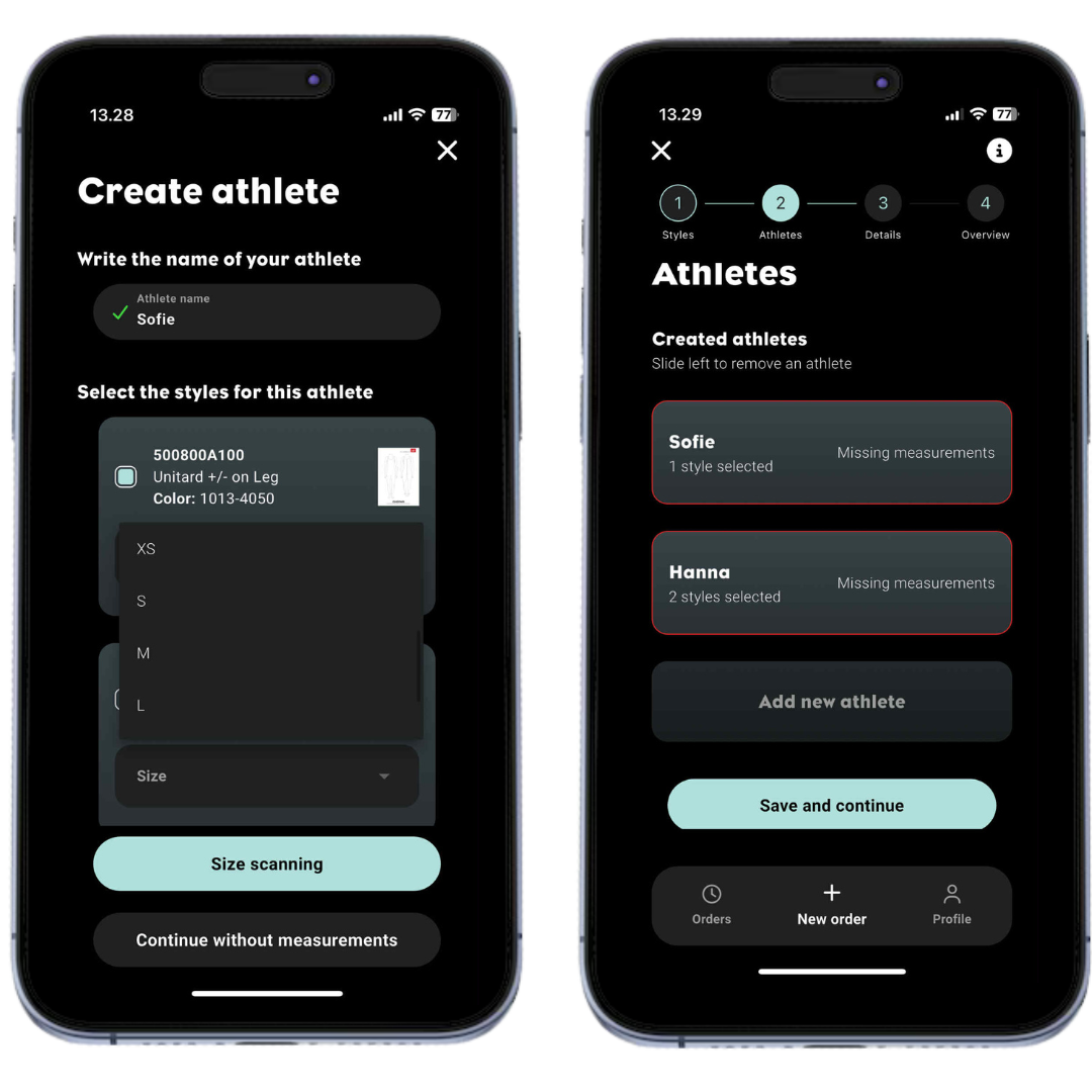 - (Du kan också gå direkt till storleksscanning, men vi rekommenderar att du skapar alla atleter i laget först.)