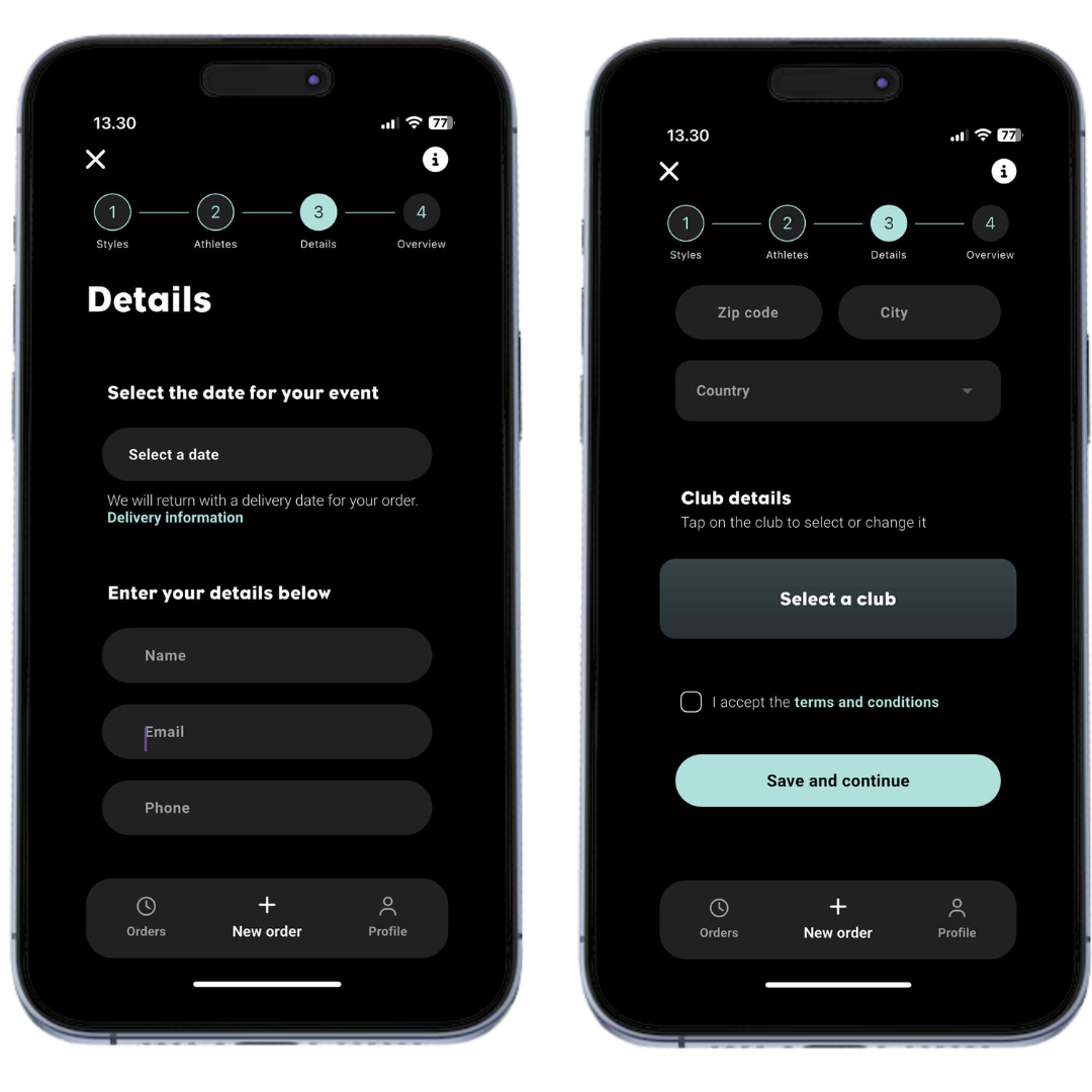 - När du är klar med att välja plagg för atleten, tryck på ”Fortsätt utan mätningar”.