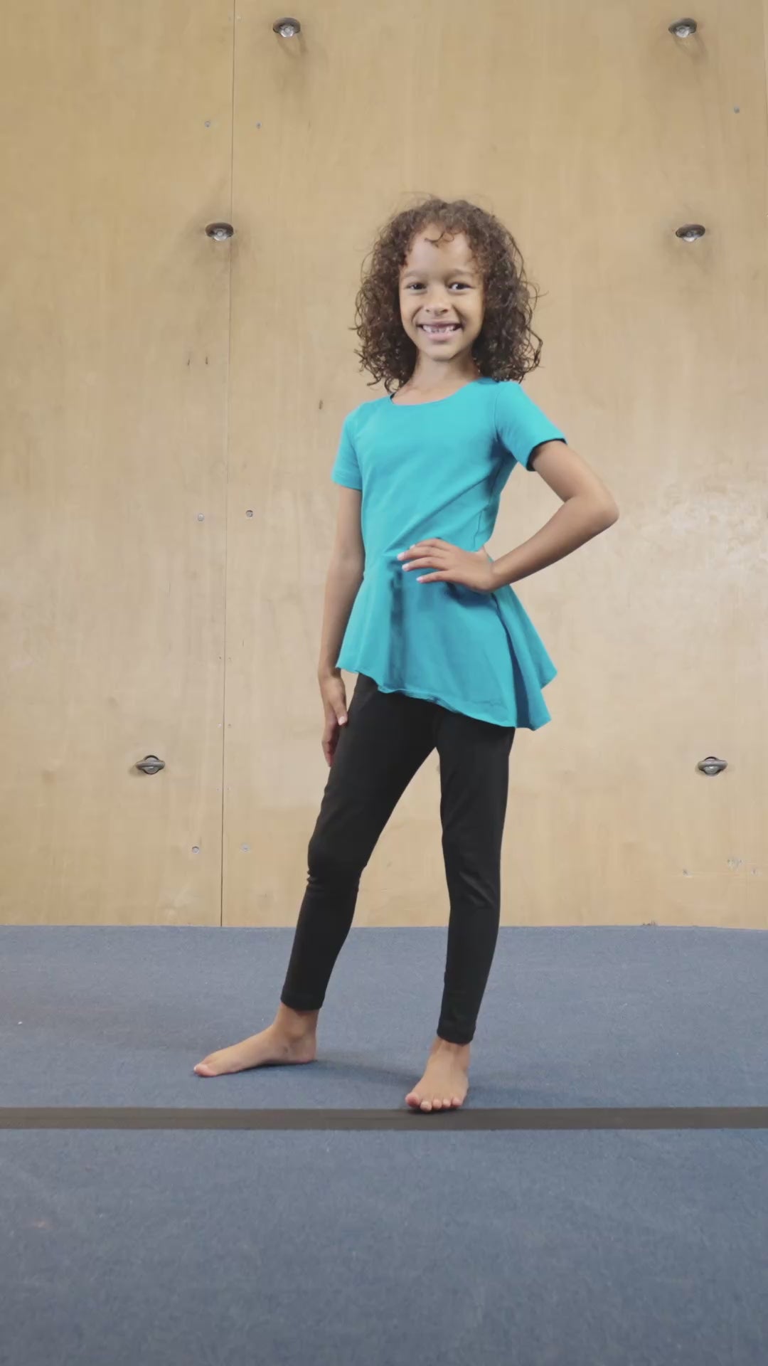 Fin topp för flickor med kort ärm och sned nederkant. Vi rekommenderar att bära shorts, tights eller en dräkt under. Under högsäsong kan varan vara slutsåld. Vi uppmanar därför till att beställa i god tid.